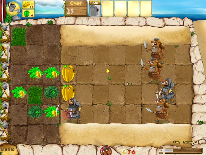 Ваше прекрасное ранчо у подножия горы растет и процветает. На грядках созревают спелые овощи и фрукты, а в небольших загонах мирно пасется домашний скот: овцы, коровы и цыплятки. Но однажды все изменилось! Вашу ферму атаковали кабаны. Ваша главная задача - отстоять ранчо как можно быстрее, пока эти ужасные монстры не подмяли его под себя. Научитесь собирать растительное оружие и создавать защитные маневры, чтобы не потерять шикарный урожай и домашних животных!